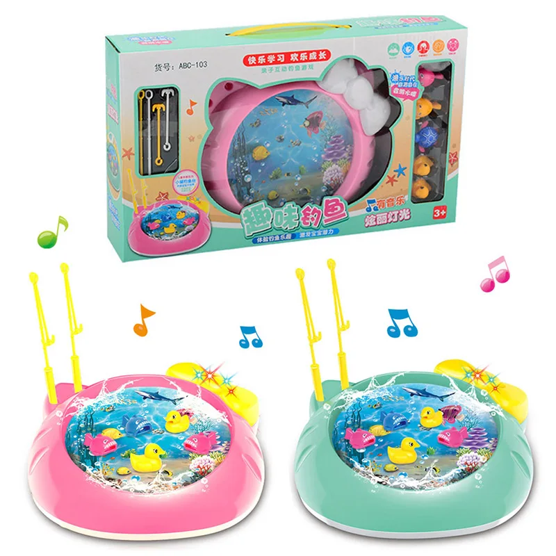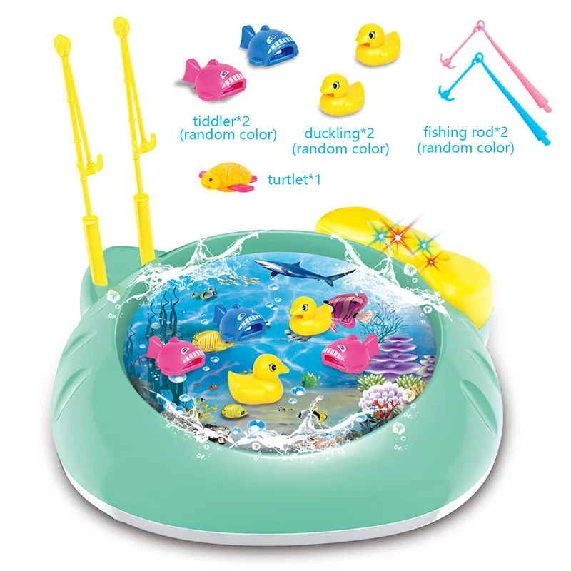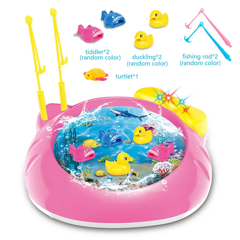 New Electric Rotating Fish Pool with Light Music Magnetic Fishing Pole Rod Fish Model Set Kid Education