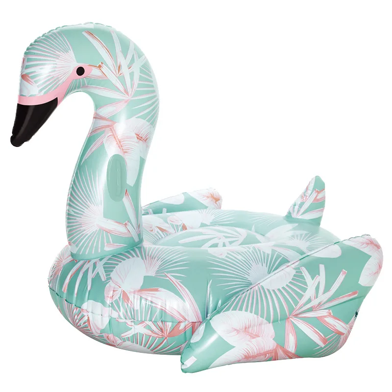 Promo Giant Flower Print Swan Inflatable Float For Adult Pool Party Toys Green Flamingo Ride-On Air Mattr