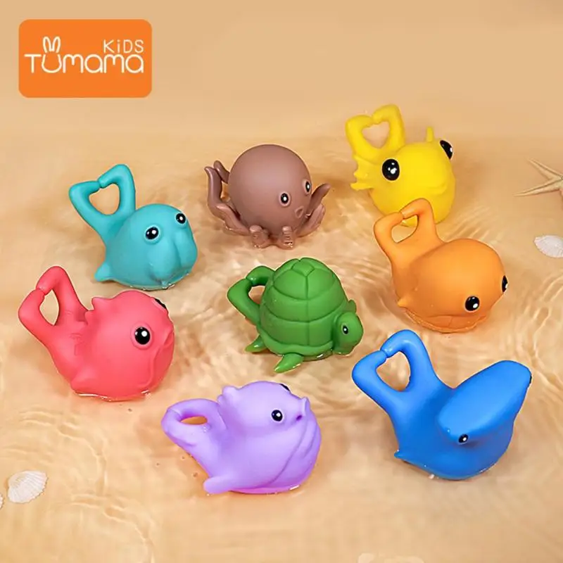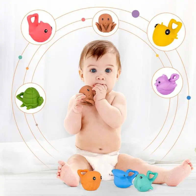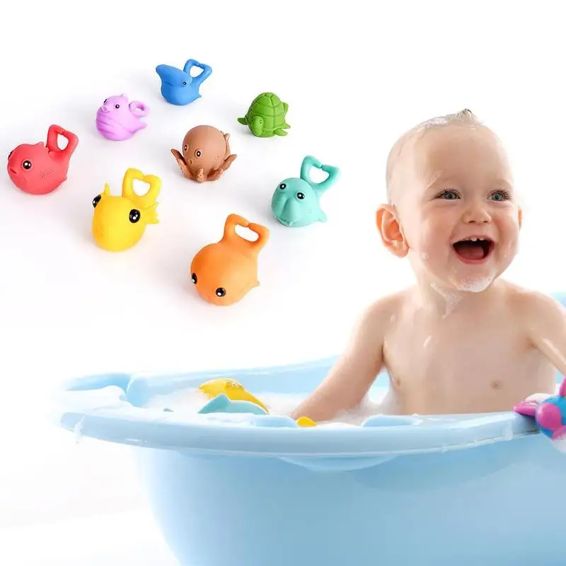 lower price 8pcs Baby Bath Toys Spraying Watering Toy Rubber Cartoon Bathroom Pool Animals Water Spray Bath Toy